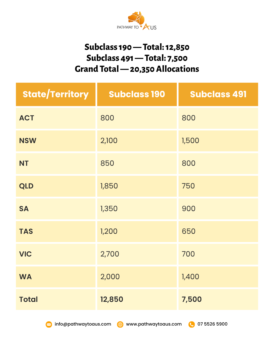 Each year, the Australian Government gives every state and territory a fixed number of potential migrants they can nominate for these 2 visas: