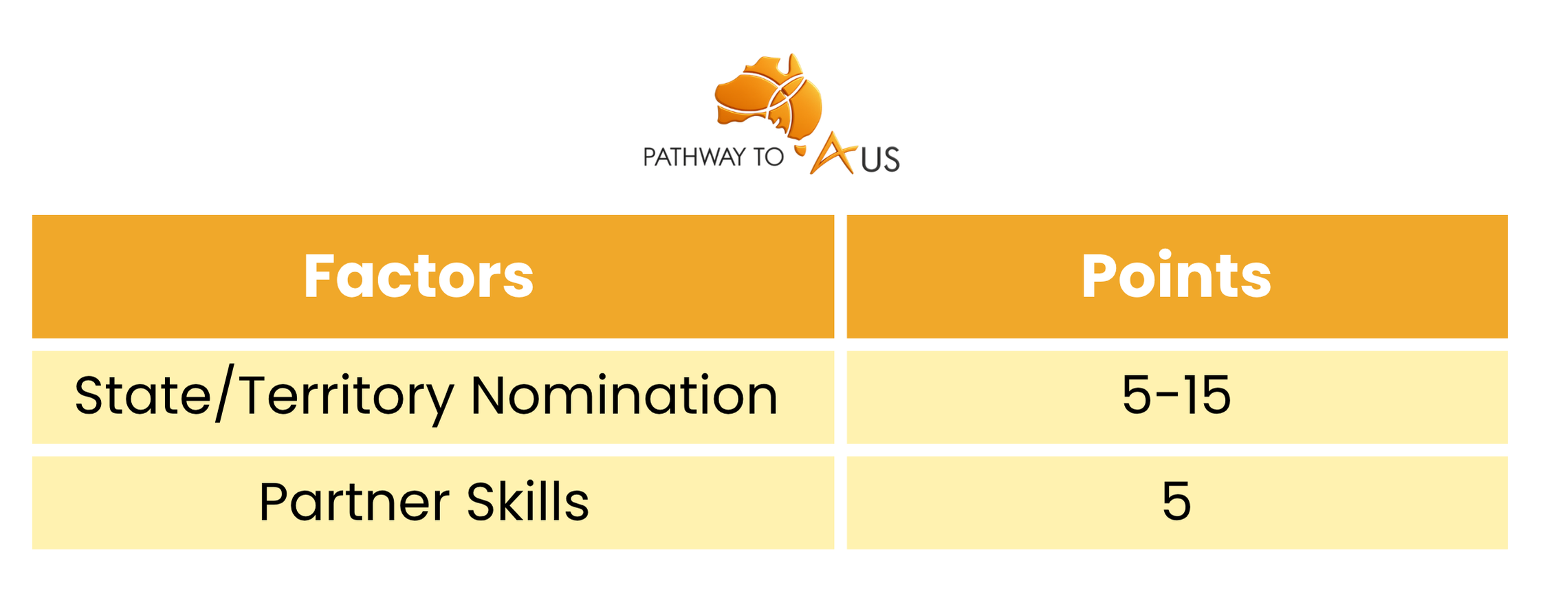 An applicant gets more points when they get nominated by a state or territory. Skilled Nominated (subclass 190) adds 5 points, while Skilled Work Regional (subclass 491) gets 15 points. You can check out the requirements for each location: